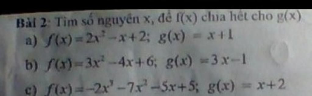 & \text{a) } f(x) = 2x^2 - x + 2 \text{ ; } g(x) = x + 1 \\
