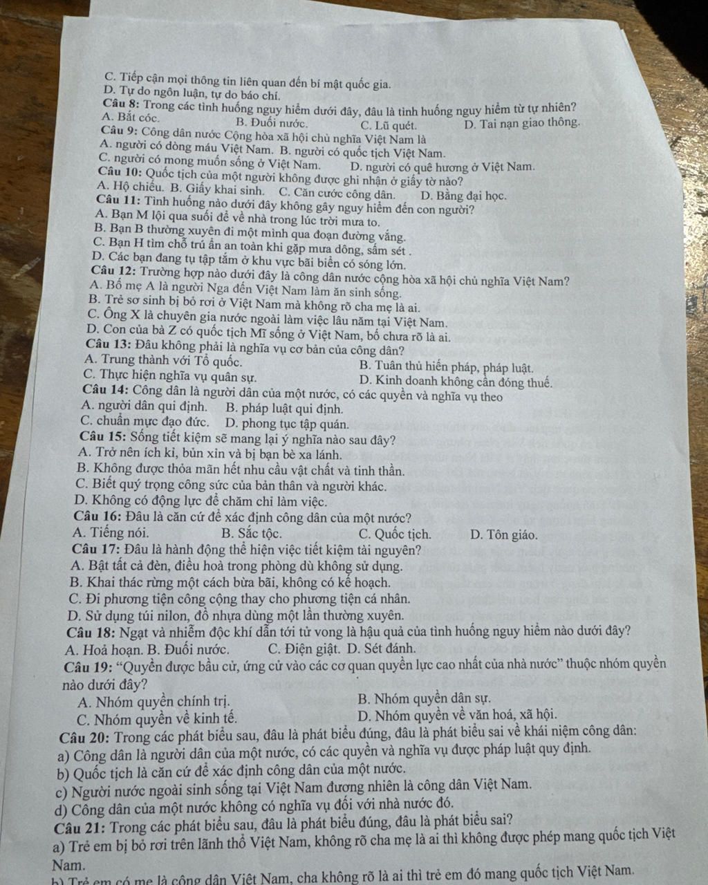 `-` Gthich: Phát biểu (`a`) sai vì luật quy định trẻ bị bỏ rơi tại Việt Nam sẽ có quốc tịch Việt Nam.
