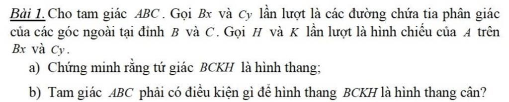 Bài 1. Cho tam giác ABC. Gọi Bx và Cy lần lượt là các đường chứa tia phân giác