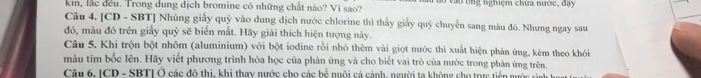 Trong dung dịch nước chlorine có các hợp chất: `HCl;HClO;H_2O`