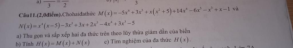 & \text{b) Tính } H(x) = M(x) + N(x) \\