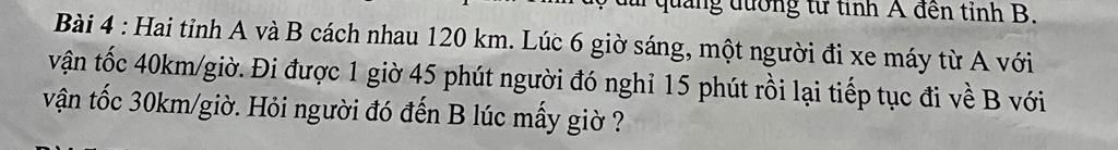 Đổi: 1 giờ 45 phút= 7/4 giờ, 15 phút= 1/4 giờ