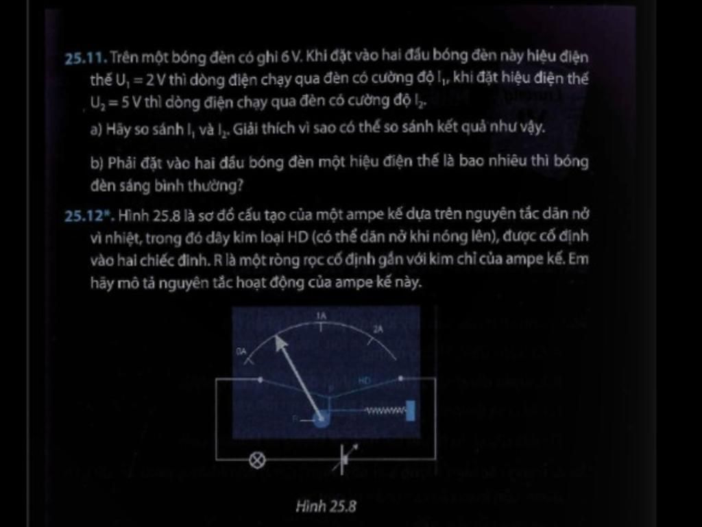 25.11. Trên một bóng đèn có ghi 6V. Khi đặt vào hai đầu bóng đèn này hiệu điện