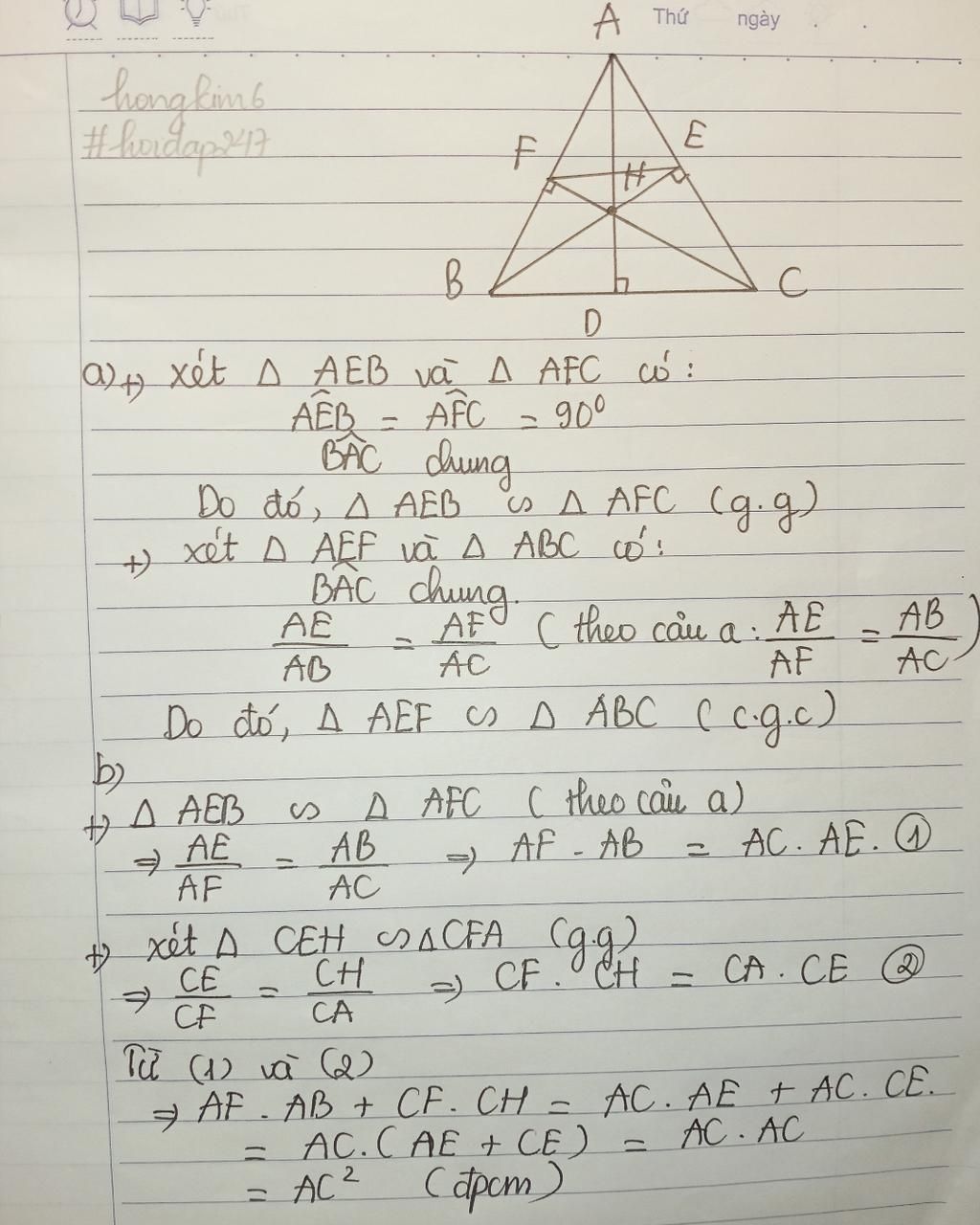 a) chứng minh rằng aeb đồng dạng afc và aef đồng dạng abc