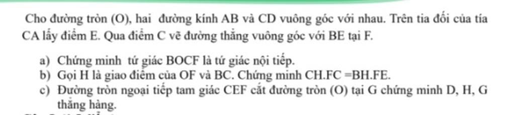 b) Gọi H là giao điểm của OF và BC. Chứng minh CH.FC =BH.FE.
