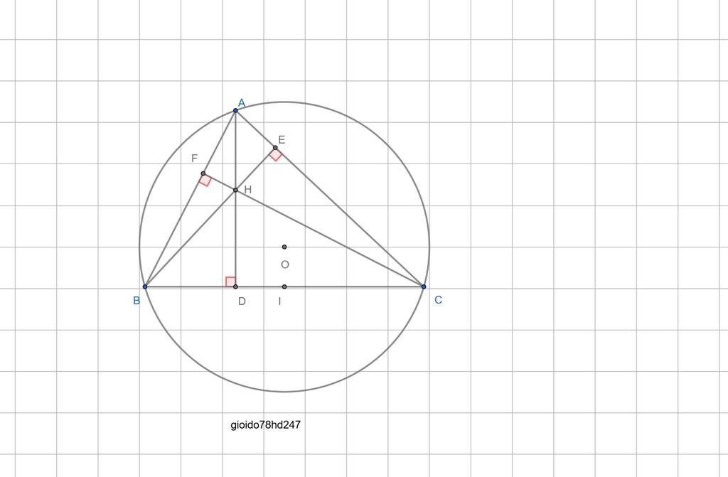 Suy ra `4` điểm `B,C,E,F` cùng `∈ 1` đg tròn do đó tứ giác `BCEF` nội tiếp.