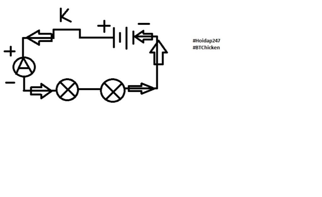 `-` Vd `:` vẽ mạch điện gồm nguồn pin, 2 bóng đèn mắc nối tiếp, Ampe kế và dây dẫn