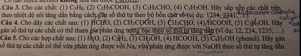 (3) $\text{CH}_3\text{CHO}$: Có nhóm $-\text{CHO}$ (tm).