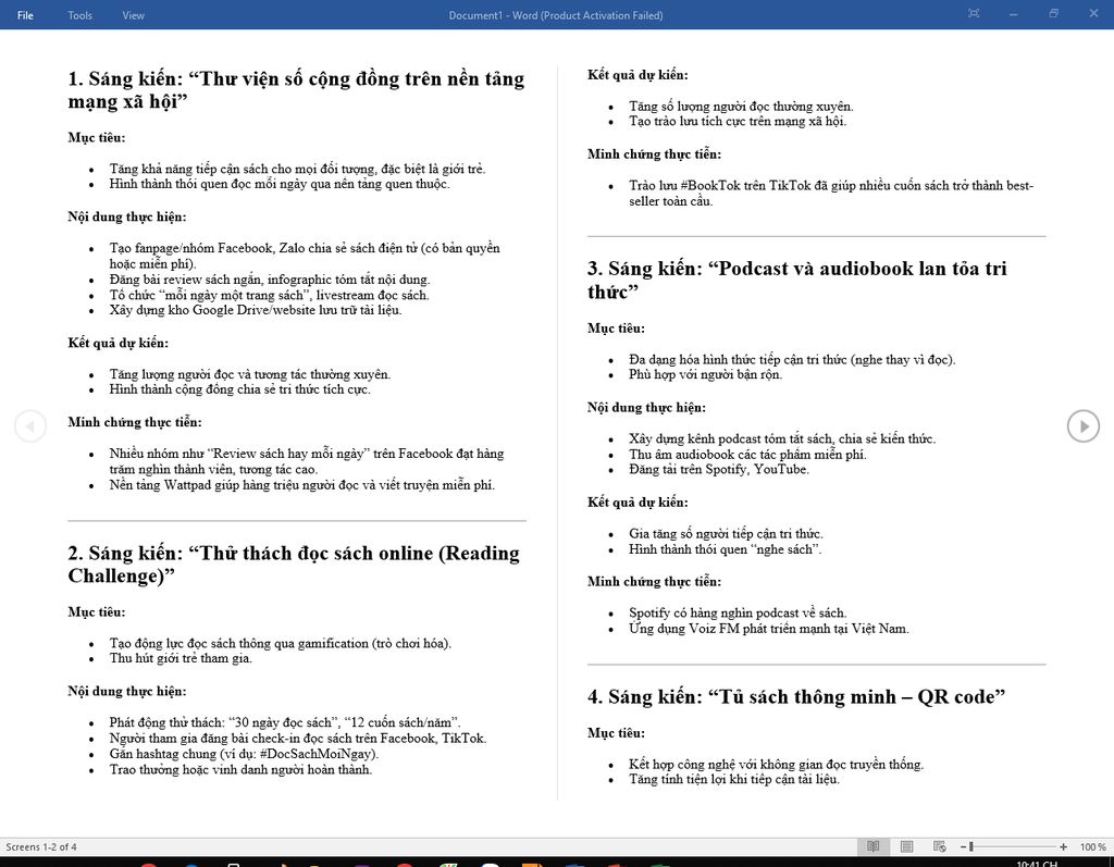 Em hay đề xuất sáng kiến, giải pháp, khuyến nghị sử dụng công nghệ, mạng xã hội nhằm phát triển văn hóa đọc và lan tỏa tri thức trong cộng đồng, nêu được mục tiêu, nội dung công việc thực hiện, dự kiến kết quả đạt được, khuyến khích những sáng kiến đã được áp dụng trong thực tiễn và có minh chứng.