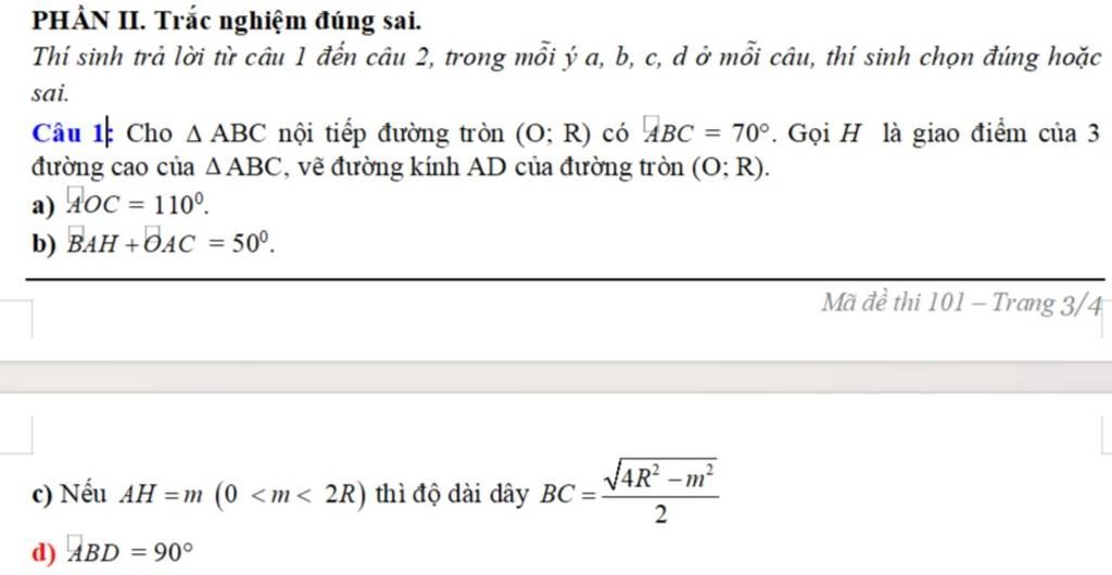 Do đó `\hat{BAH} + \hat{OAC} = 20^0 + 20^0 = 40^0` ( B sai)