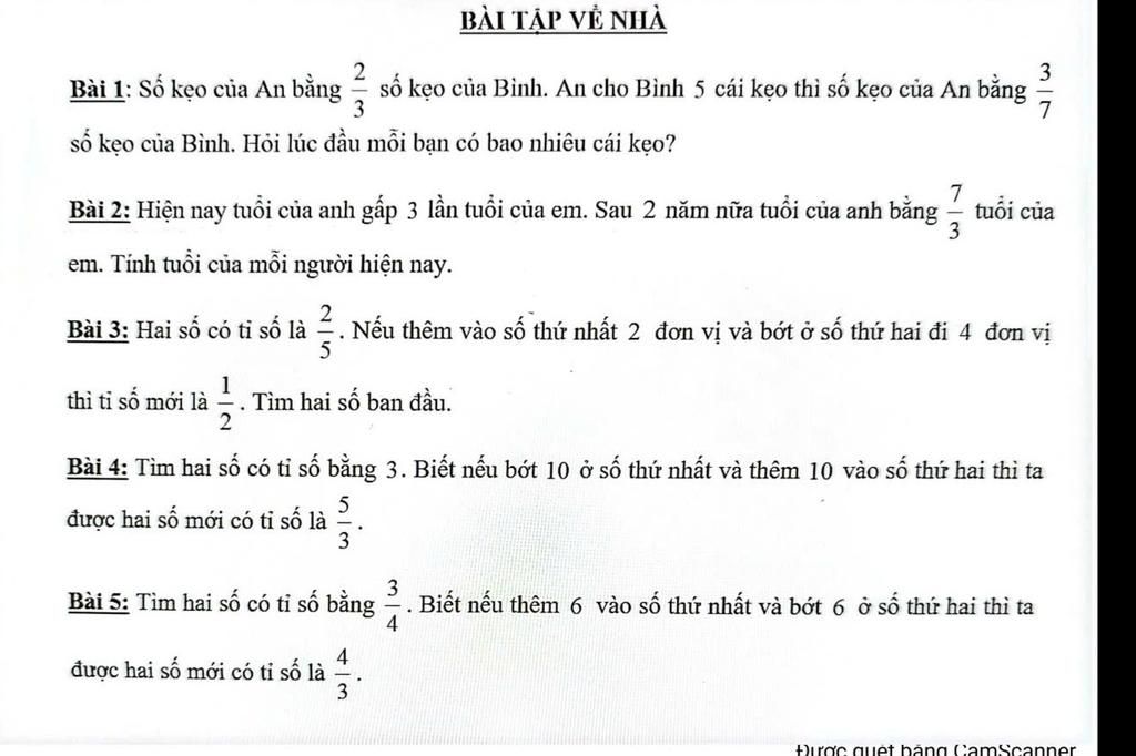 số kẹo của Bình. An cho Bình 5 cái kẹo thì số kẹo của An bằng