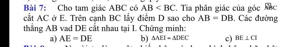 Mà $AB = DB$ (gt) $\Rightarrow BI = BC$