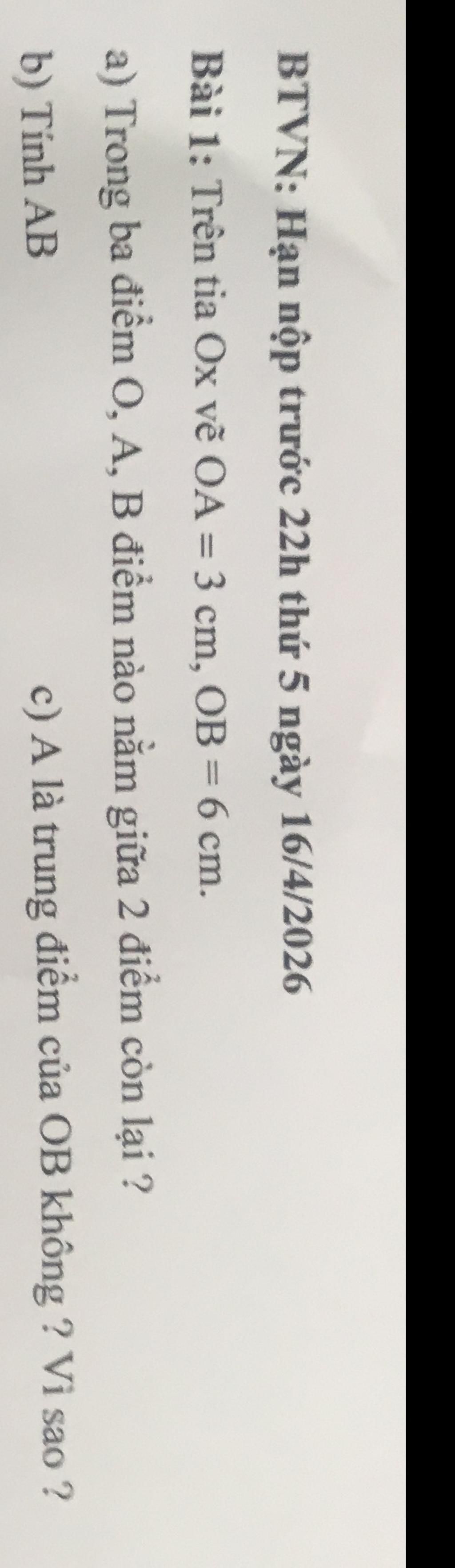 a) Vì A và B cùng nằm trên tia Ox, mà: