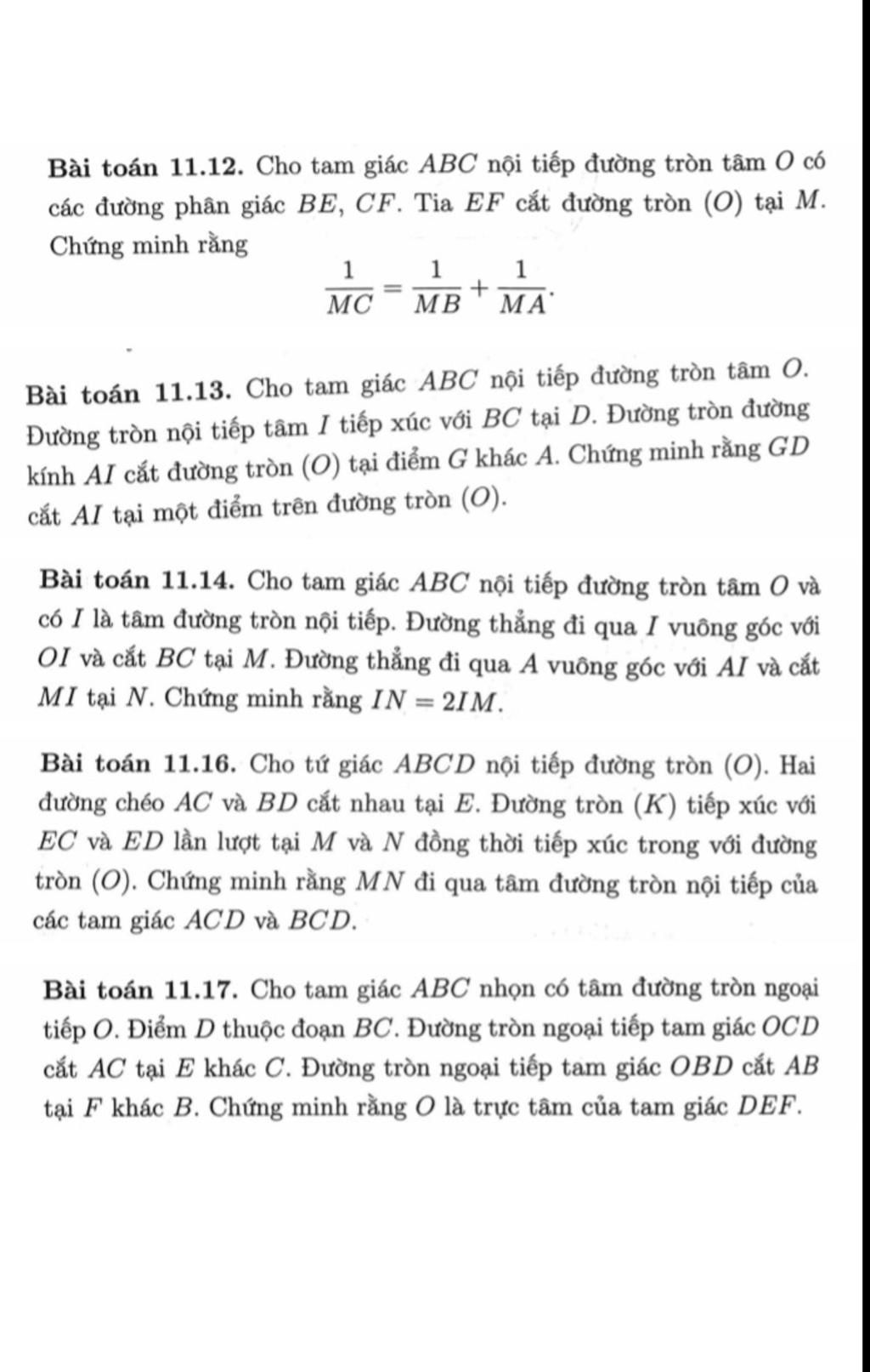 Bài toán 11.12. Cho tam giác ABC nội tiếp đường tròn tâm O có