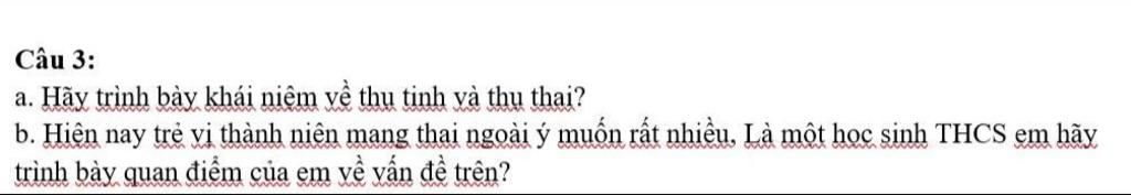 b) `-` Theo em, tình trạng trẻ vị thành niên mang thai ngoài ý muốn là vấn đề đáng lo ngại vì ảnh hưởng đến sức khỏe, tâm lí, việc học tập và tương lai. Là học sinh THCS, em cần sống lành mạnh, tập trung học tập, trang bị kiến thức giới tính đúng đắn, biết tự bảo vệ bản thân, giữ các mối quan hệ phù hợp với lứa tuổi và có trách nhiệm với bản thân để tránh những hậu quả đáng tiếc.