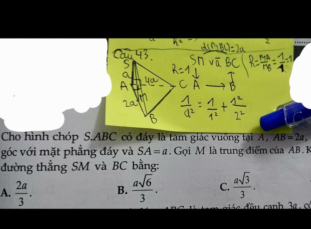 Khi đó $BC // (SMN)$ nên $d(BC, SM) = d(BC, (SMN)) = d(B, (SMN))$
