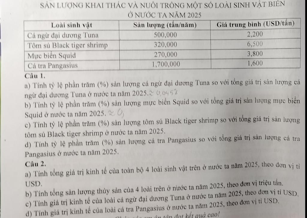 SẢN LƯỢNG KHAI THÁC VÀ NUÔI TRONG MỘT SỐ LOÀI SINH VẬT BIỂN