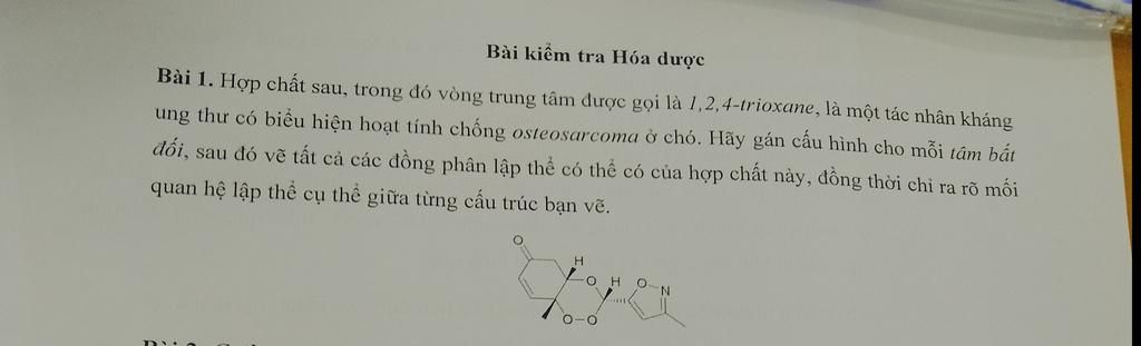 Bài 1. Hợp chất sau, trong đó vòng trung tâm được gọi là 1,2,4-trioxane, là một tác nhân kháng