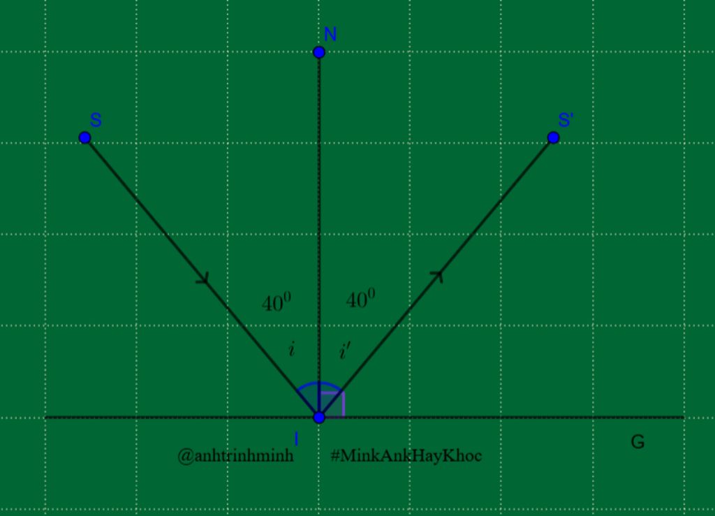 chiếu một tia sáng tới đến hợp với gương nằm ngang 40 độ . hãy vẽ hình , hãy tính i , i' và góc hợp bởi tia tới và tia phản xạ