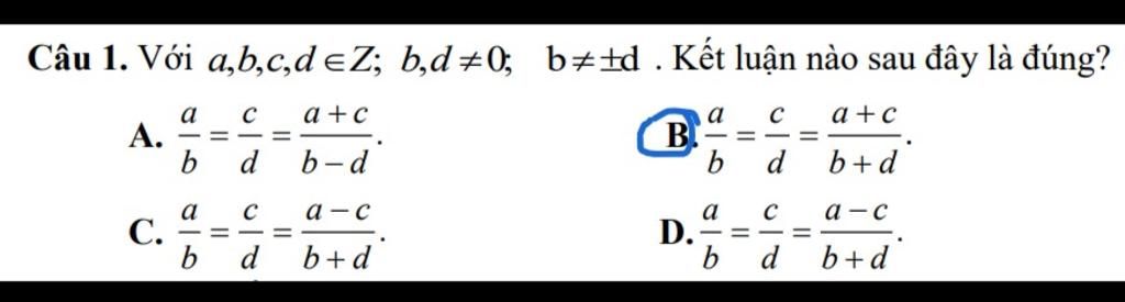 `a/b=c/d` `(` với `a,b,c,d in ZZ ; b,d \ne 0; b \ne +-d` `)`