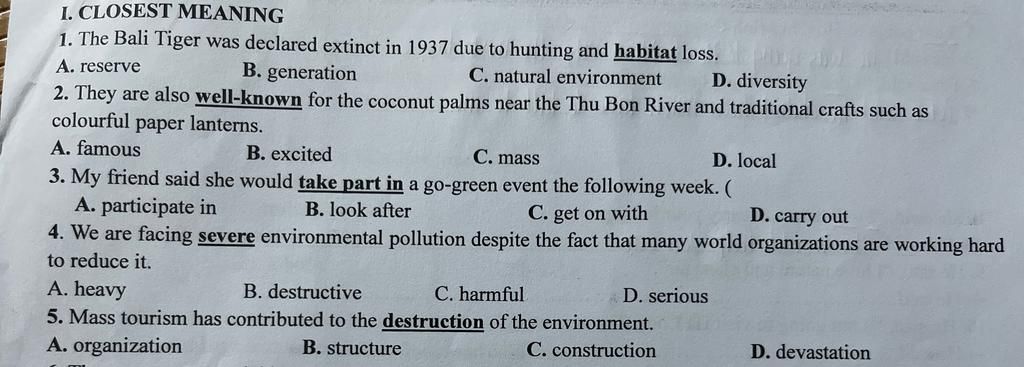 habitat (n) môi trường sống = natural environment (n) môi trường tự nhiên