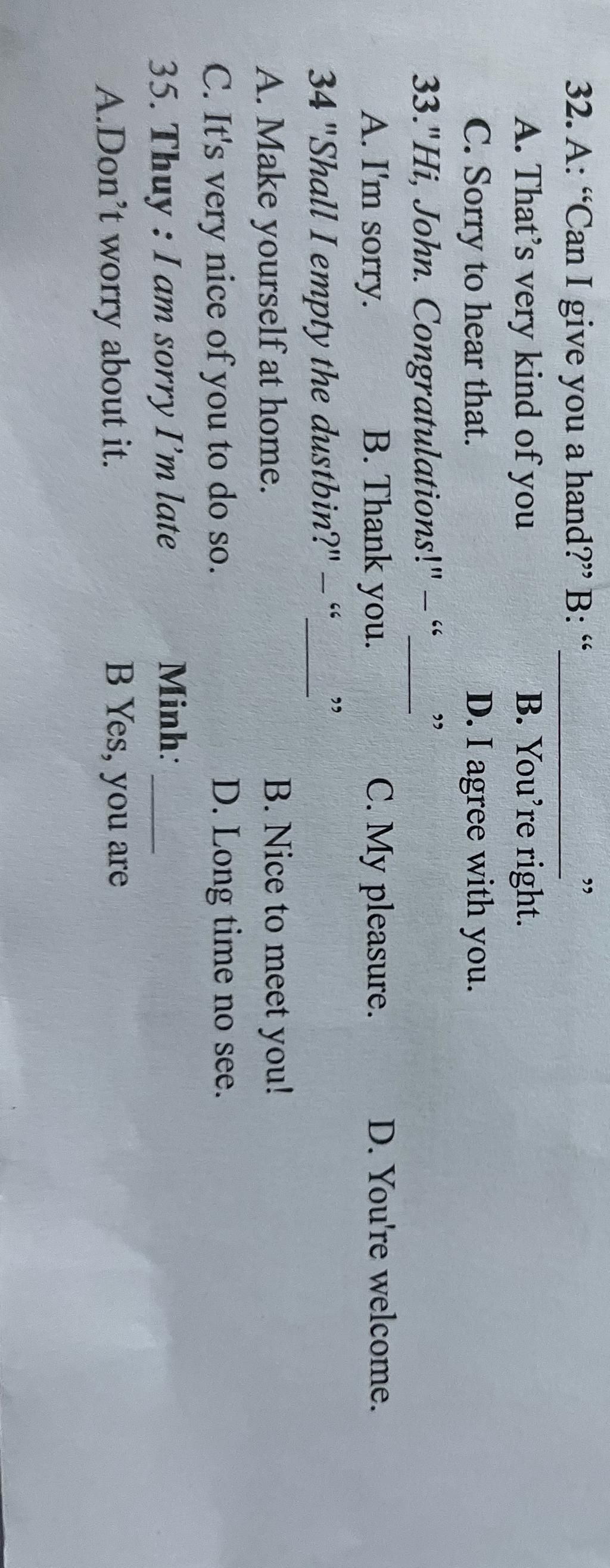 `-` Xin lỗi `=>` Đáp lại: Don’t worry `/` It’s okay (kh sao đâu)