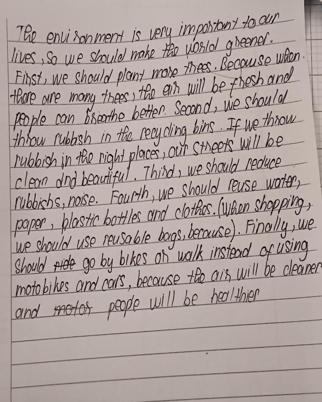 `-` Lỗi câu dở dang: Câu (When shopping, we should use reusable bags, because). bị thiếu vế sau để giải thích lý do, khiến câu ko hoàn chỉnh về ý nghĩa
