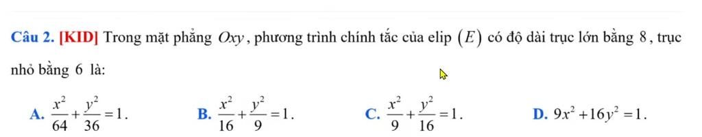 `=>` pt chính tắc của Elip có độ dài trục lớn bằng 8, độ dài trục bé bằng 6 có dạng