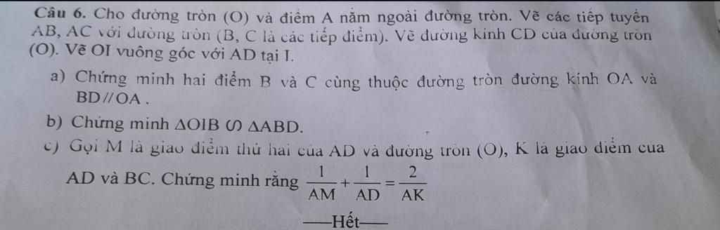 c) Gọi M là giao điểm thứ hai c ...