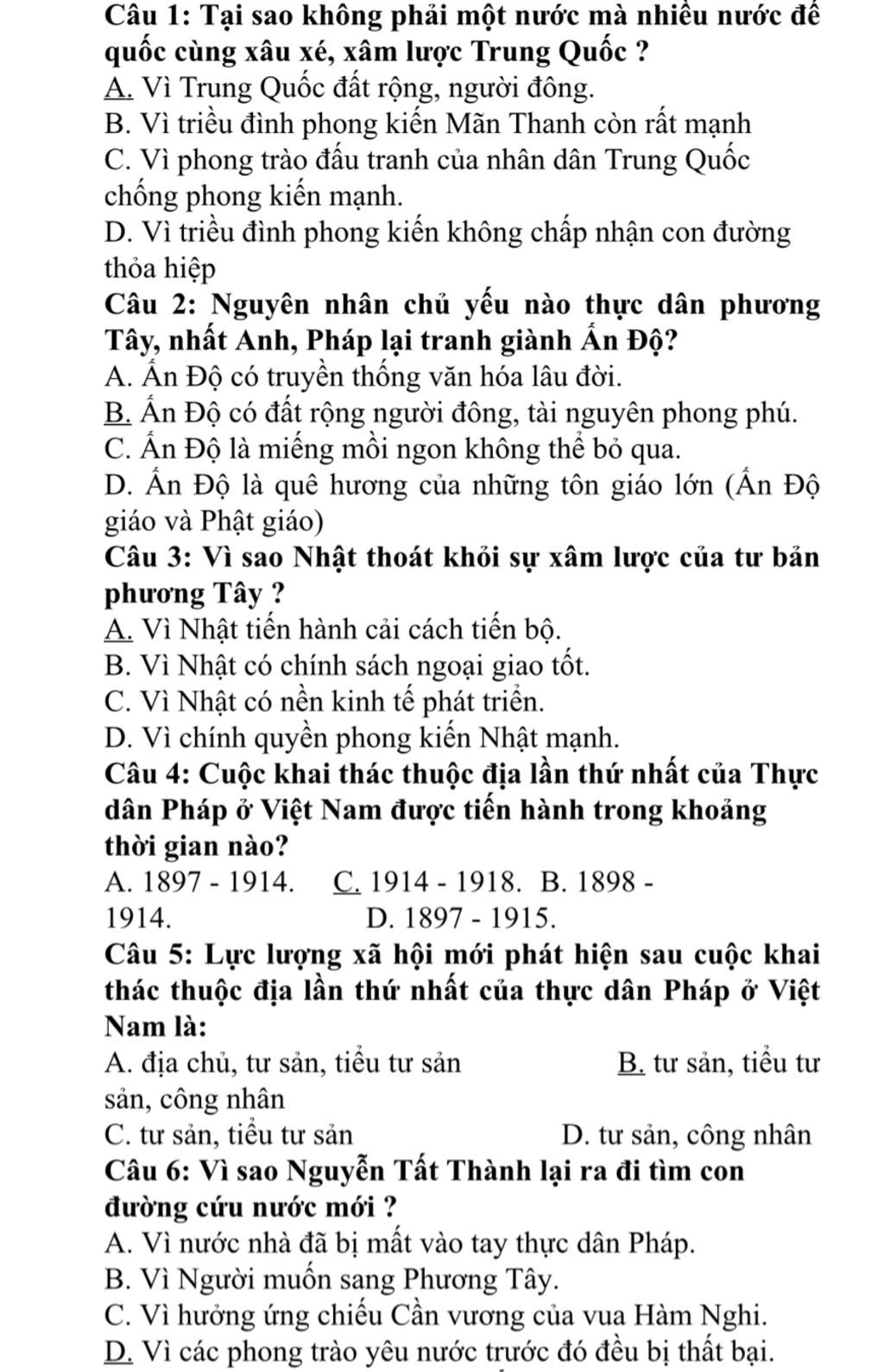 `Câu` `6:` `D.` `Vì` `các` `phong` `trào` `yêu` `nước` `trước` `đó` `đều` `bị` `thất` `bại`