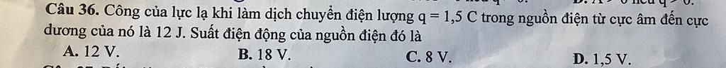Giải thích các bước giải: suất điện động của nguồn điện đc xác định bằng thương số giữa công của lực là <A> làm dịch chuyển điện tích <q> và độ lớn của điện tích đó