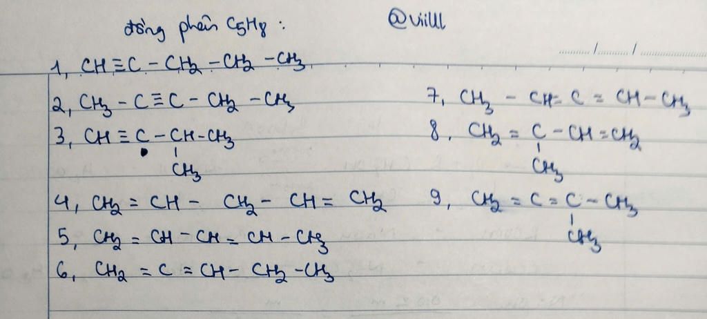 Viết đồng phân cấu tạo của c5h8( Trừ đồng phân hình học còn lại viết hết)