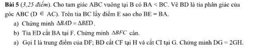 `ΔBFC` cân tại `B` có `:` `BH` là đường phân giác