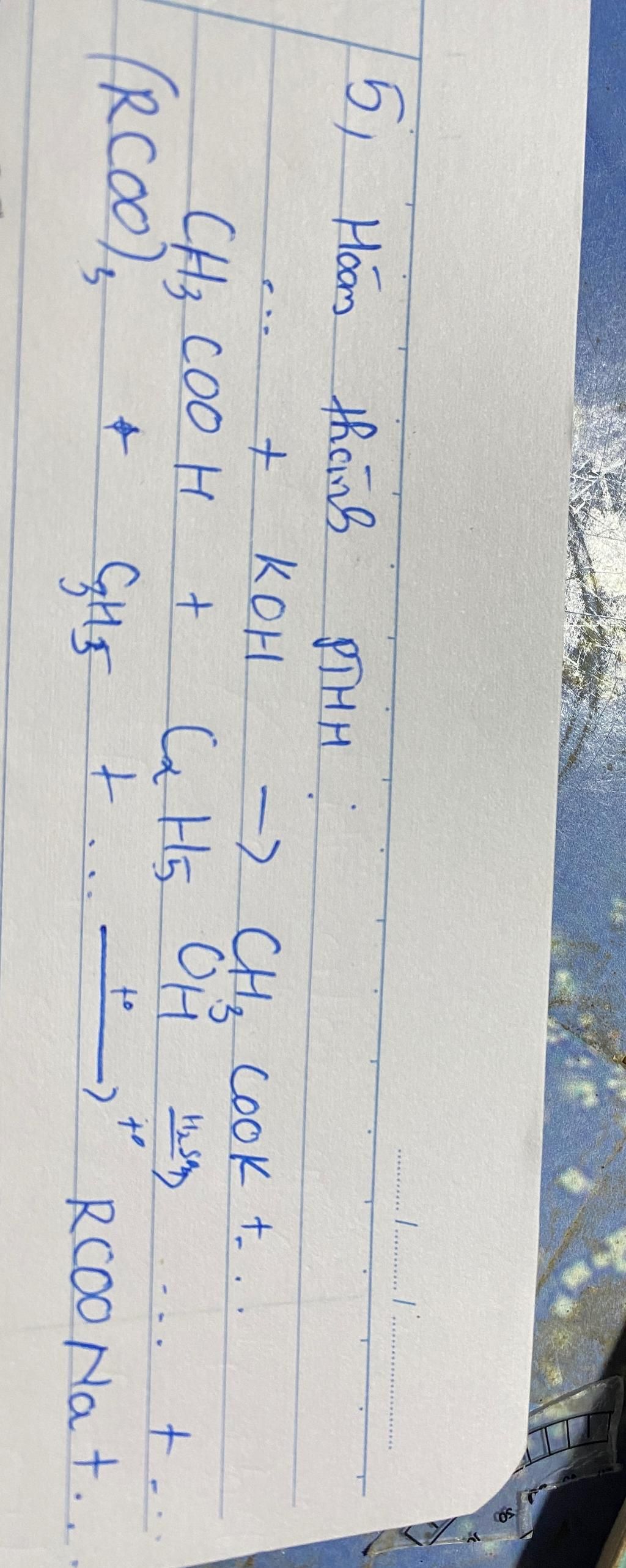 $3. \mathrm{(RCOO)_3C_3H_5 + 3NaOH \xrightarrow{t^\circ} 3RCOONa + C_3H_5(OH)_3}$