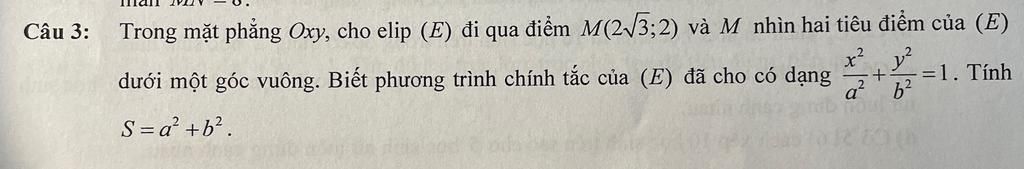 Điểm M(23,2)M(2\sqrt{3},2)M(23,2) thuộc elip: