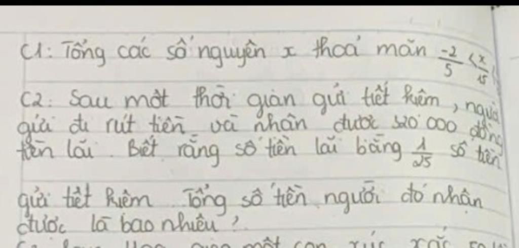 $$-\frac{12}{30} < \frac{2x}{30} < \frac{5}{30}$$$$\Rightarrow -12 < 2x < 5$$Vì $x$ nguyên nên $2x$ là các số chẵn: $-10, -8, -6, -4, -2, 0, 2, 4$.Các giá trị $x$ tương ứng: $-5, -4, -3, -2, -1, 0, 1, 2$.