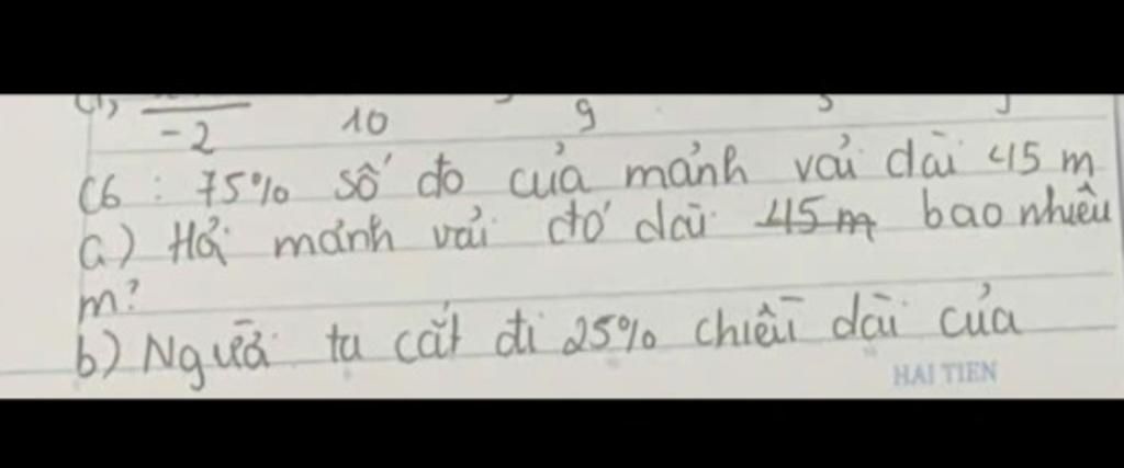 ... b) Chiều dài của mảnh vải hỏi mảnh vải còn lại bao nhiêu mét?