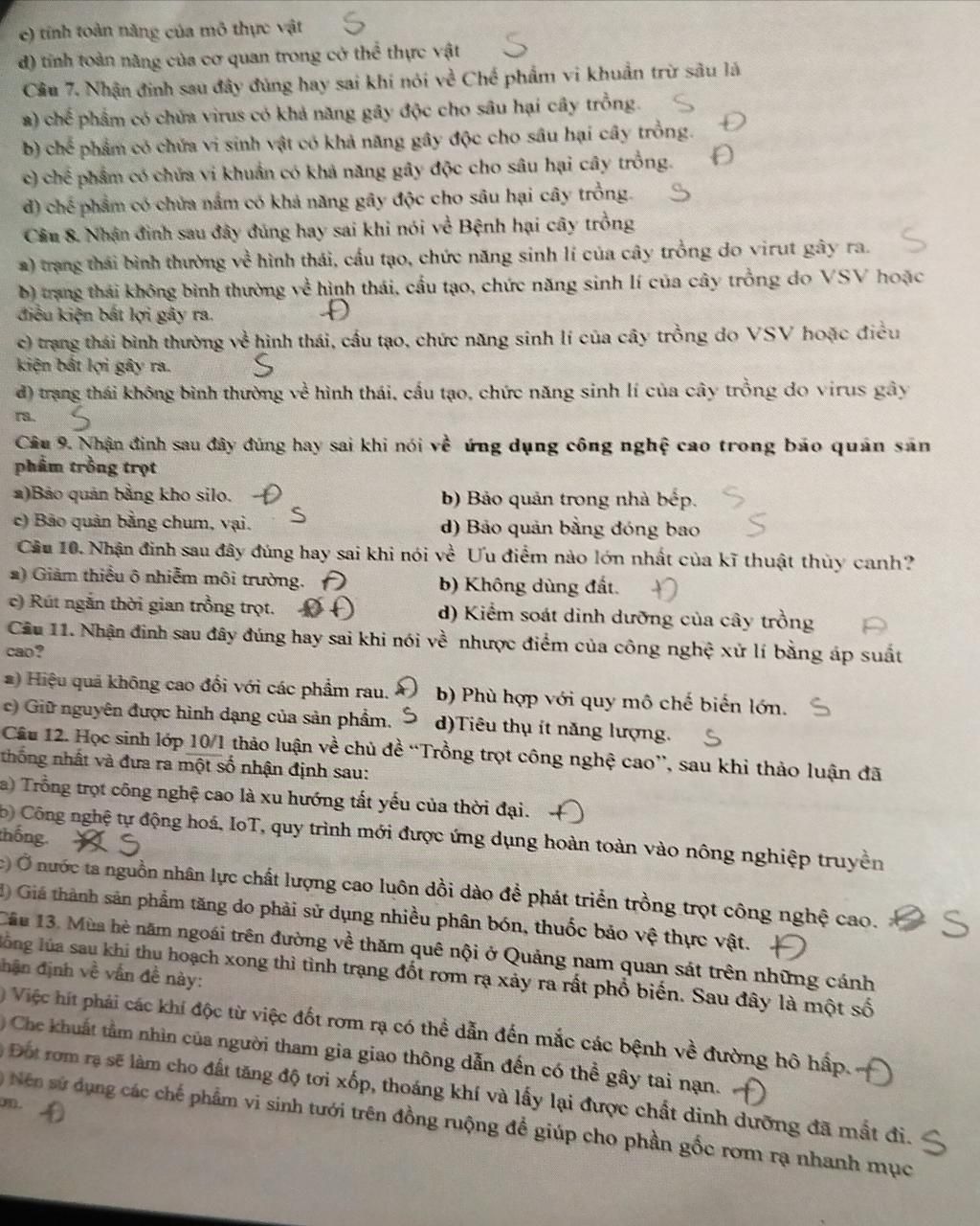 Câu 7. Nhận định sau đây đúng hay sai khi nói về Chế phẩm vi khuẩn trừ sâu là
