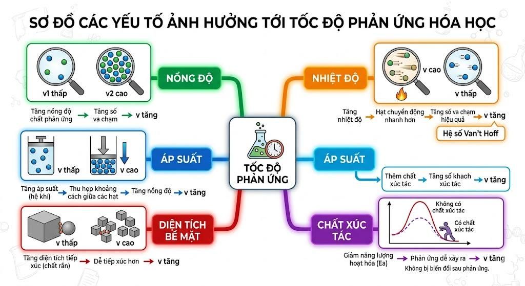 lập sơ đồ các yếu tố ảnh hưởng tới tốc độ phản ứng