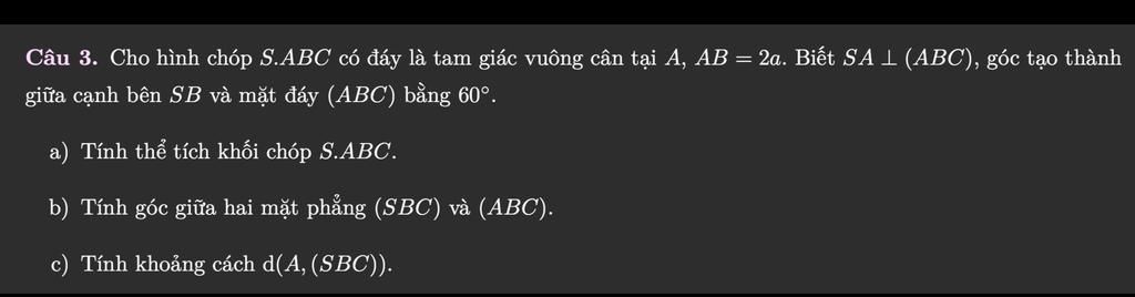 $\Rightarrow SA = AB \cdot \tan 60^\circ = 2a\sqrt{3}$