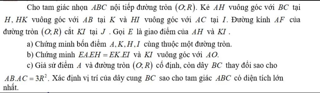 a) Chứng minh bốn điểm A,K,HI cùng thuộc một đường tròn.