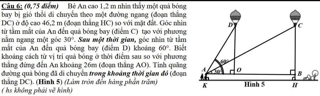 => AO = 15√3 ≈ 25,98 (m) (đề bài cho khoảng AO khoảng 26m là khá sát số này).