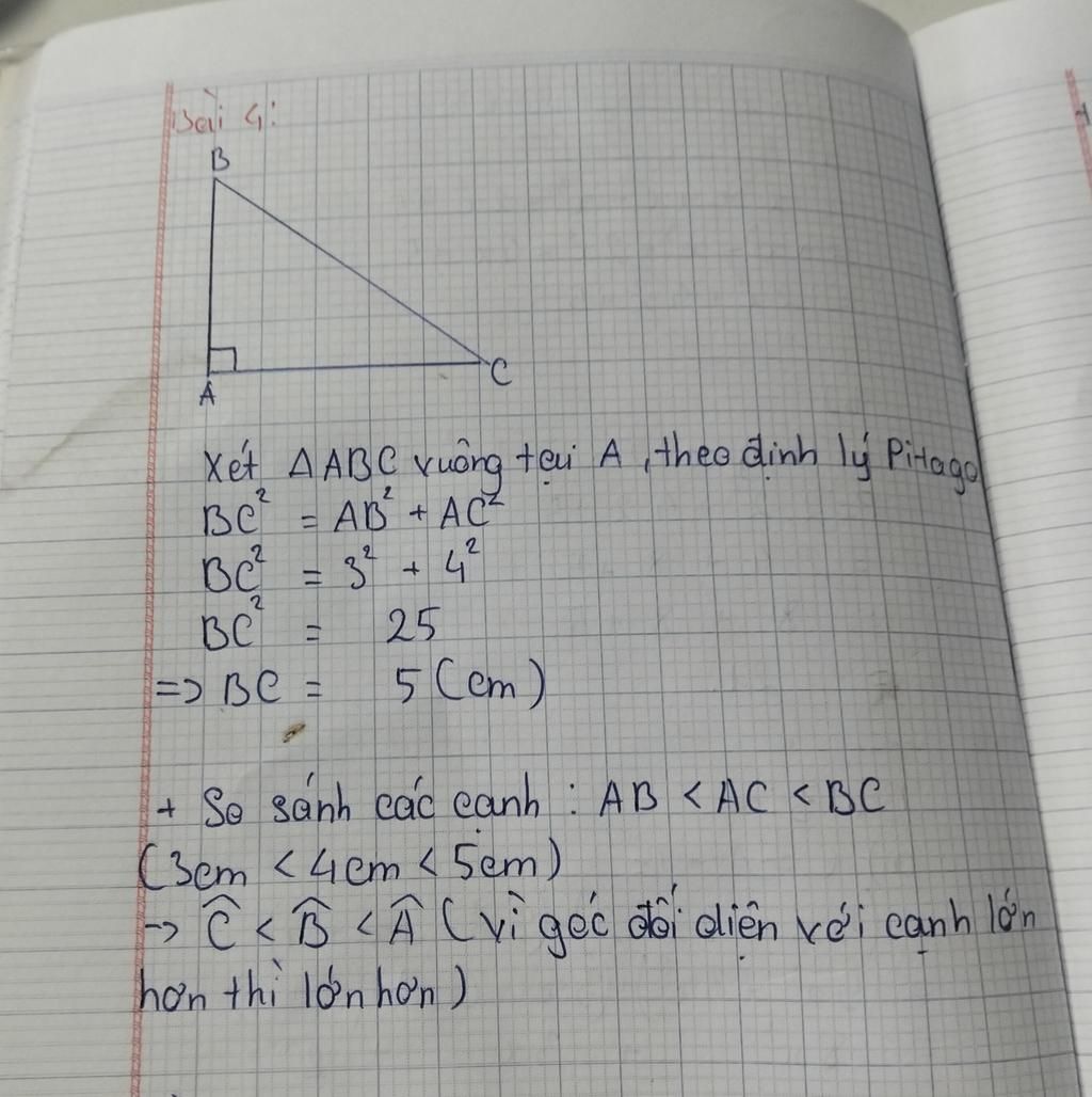 Phần giải tiếp theo là áp dụng quan hệ giữa góc và cạnh đối diện trong tg nhé bn