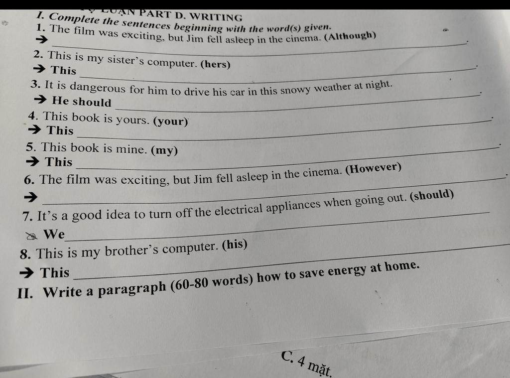 Giải thích : mine là đại từ sở hữu. Khi chuyển sang tính từ sở hữu my, ta phải thêm danh từ "book" vào sau