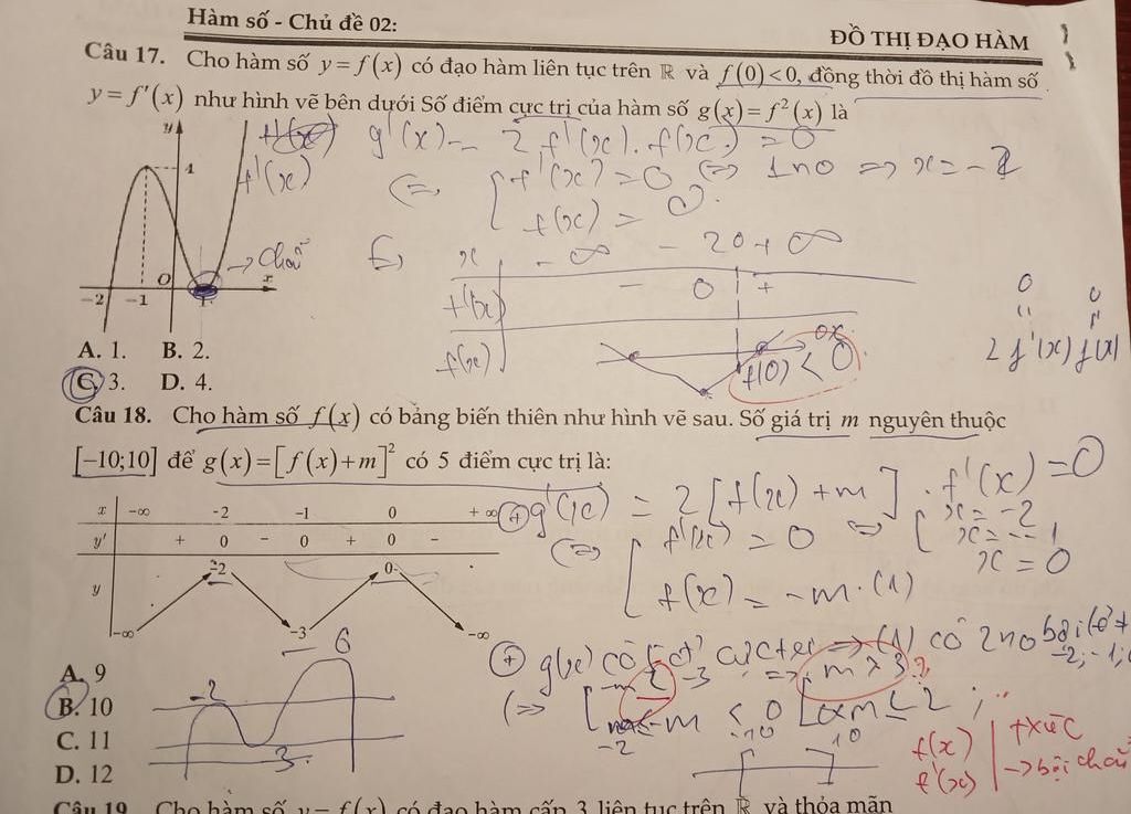 & \text{Xét hàm số } g(x) = [f(x) + m]^2 \Rightarrow g'(x) = 2[f(x) + m]f'(x). \\