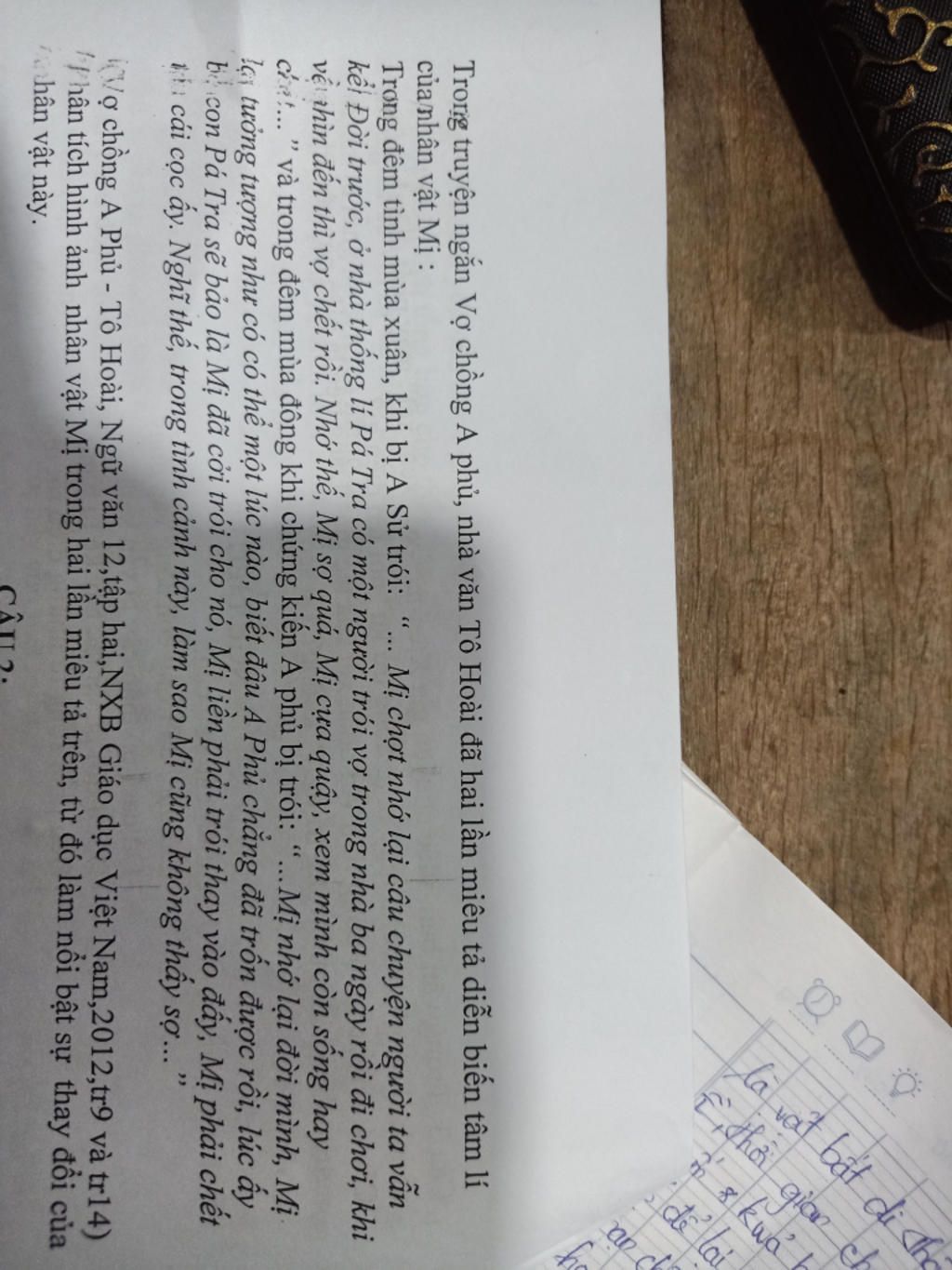 Mị bàng hoàng tỉnh... Không một tiếng động. Mị thương những người đàn bà khốn khổ sa vào nhà quan... Đời người đàn bà lấy chồng nhà giàu ở Hồng Ngài thì một đời con người chỉ biết đi theo đuôi con ngựa của chồng. Mị chợt nhớ lại câu chuyện người ta vẫn kể: Đời trước, ở nhà thống lí Pá Tra có một người trói vợ trong nhà ba ngày rồi đi chơi, khi về nhìn đến thì vợ chết rồi. Nhớ thế, Mị sợ quá, Mị cựa quậy, xem mình còn sống hay chết, cổ tay, đầu, bắp chân bị dây trói siết lại, đau dứt từng mảnh thịt.