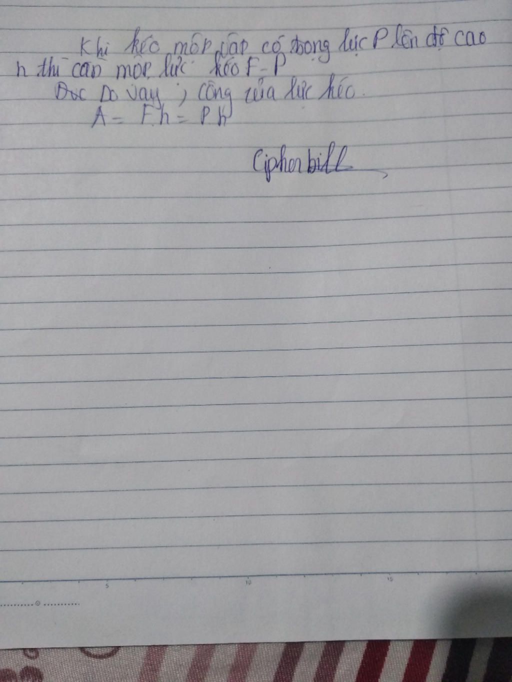 Trong trường hợp công để thắng trọng lực hoặc công mà trọng lực thực hiện làm vật rơi từ độ cao h xuống hoặc nâng vật lên độ cao $h$ thì