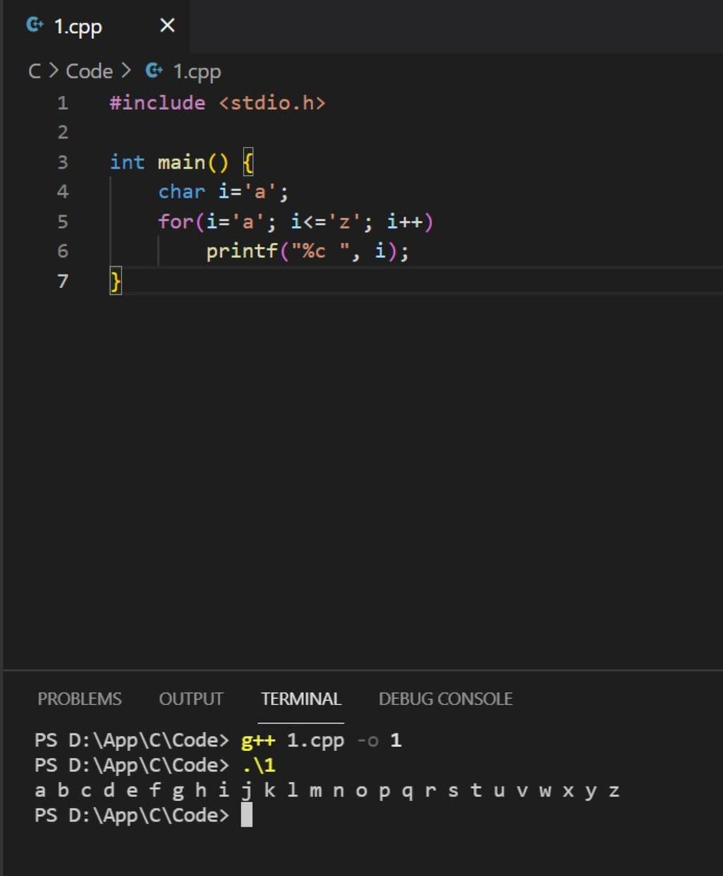 Sử dụng char để ghi các chữ cái trong bảng ASCII
