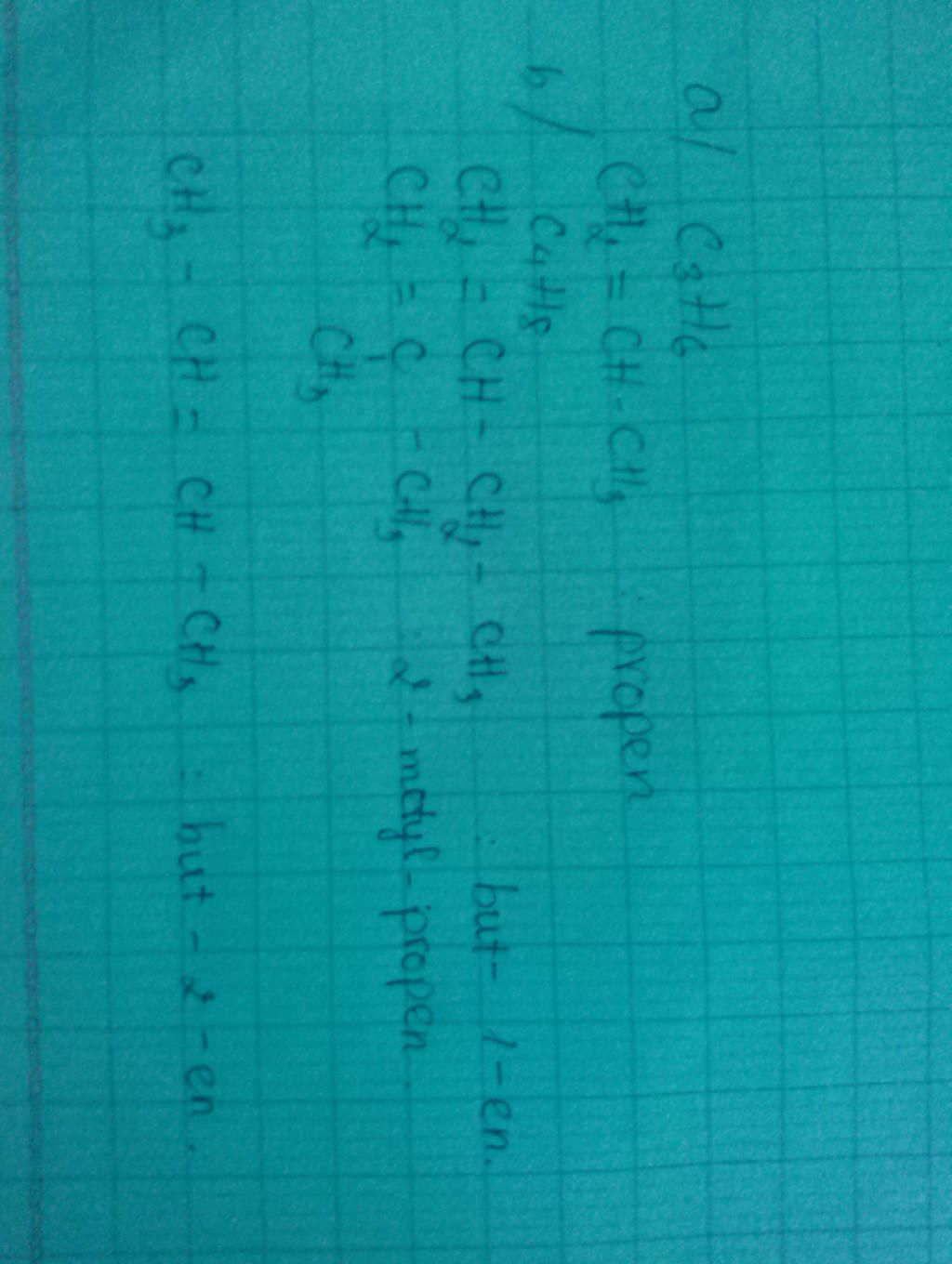 1. Đồng phân anken: CH3-CH=CH2=> Gọi Propen