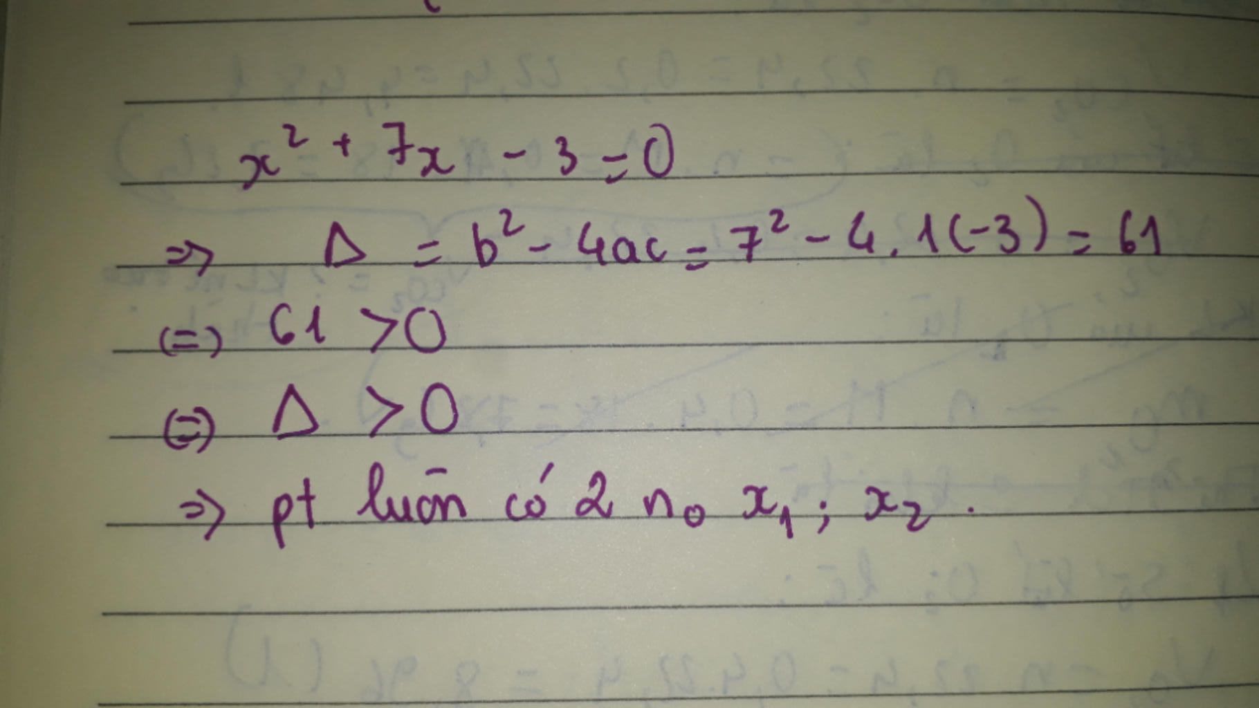 Vậy phương trình trên luôn có hai nghiệm $x1,x2 $ (điều phải chứng minh)
